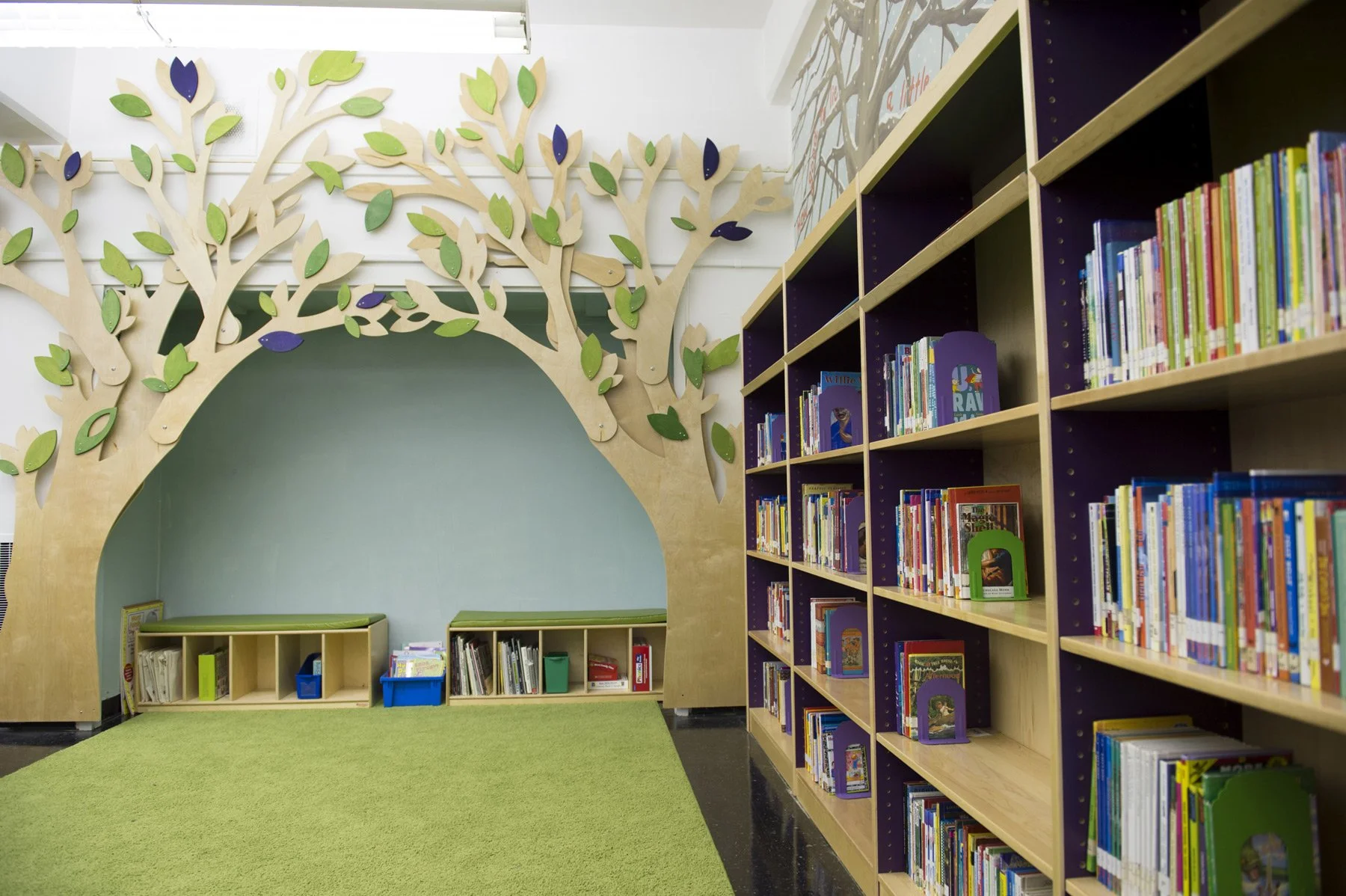 The hand-crafted Tree Installation at Brooklyn Arbor was created to make the Library a comfortable space offering flexibility, mobility and vibrancy to students.